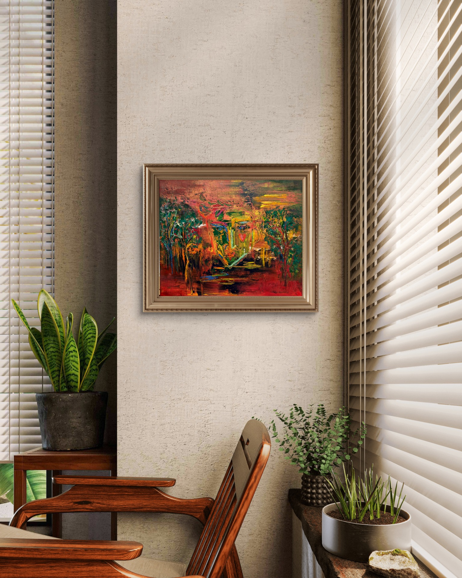 Akryylit, hiili, öljypastellit ja terazzohileet kankaalle, 100cm x 80cm, 2026