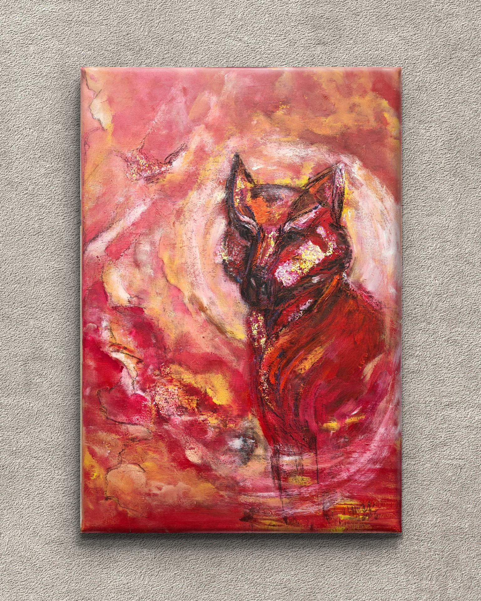 Akryylit, hiili ja öljypastellit kankaalle, 30cm x 40cm, 2026